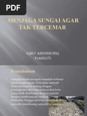 Air sungai dan laut akan menjadi kotor dan tercemar, sehingga tidak . Kita tidak sepatutnya menyerahkan tugas menjaga sungai kita hanya kepada .